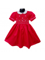 Robe smocks en coton piqué épais. Modèle avec col volant, manches longues et ceintures à nouer au dos. Brodée à la main. Longueur totale : 1 an : 45 cm / 2 ans : 50 cm / 3 ans : 55 cm / 4 ans : 60 cm / 6 ans : 70 cm / 8 ans : 80 cm / 10 ans : 80 cm / 12 ans :85 cm