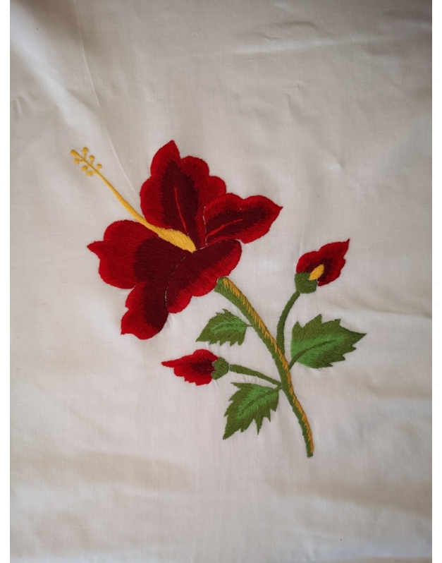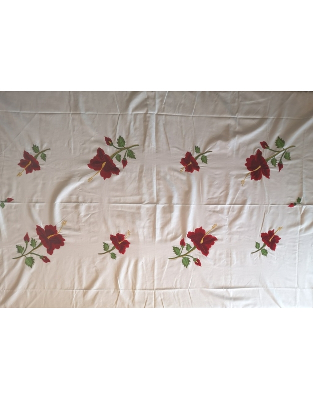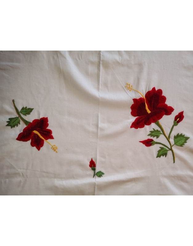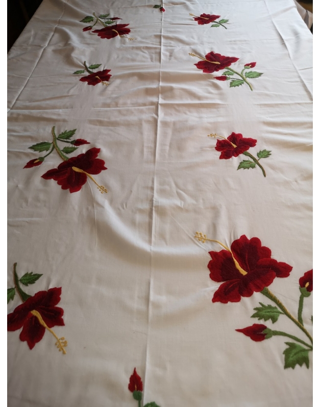 Nappe de table avec 12 serviettes coton blanc brodées entièrement à la main. Motif floral
